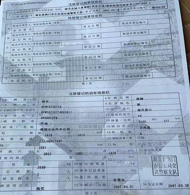 鄂H A6199輝騰WVWFD73D778小型轎車,注冊(cè)日期2007年9月,年檢到2021年9月,參考價(jià)5萬元。